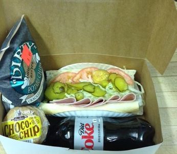 Choose a (cold sub ,chips, drink, cookie) we customize each box